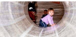 Visitors can walk, roll and slide through the twisting tunnels and curving paths created by architect/artist Eric Lennartson from packing tape stretched over a steel frame. The one-of-a-kind installation relies on the tensile strength of the tape to create a full-body, multisensory experience that engages children’s (and adult’s) curiosity while meeting the need for fun, large-muscle activities.